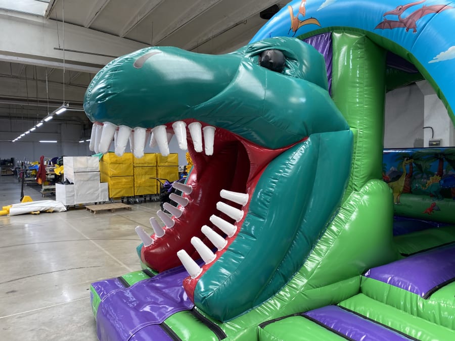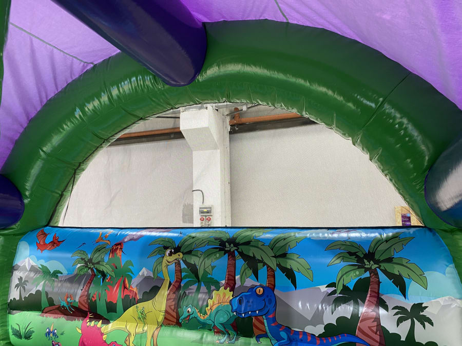 🦖 Welcome to the prehistoric world of fun and adventure with our Dinosaur Curved Front Slide Combi! 🌴🌋 This incredible inflatable bouncy castle will transport your little ones back in time to the land of the dinosaurs, where they can slide, bounce, and play to their heart's content.
