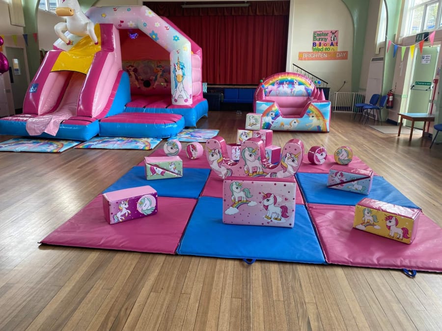 Our bouncy castle hire for party Unicorn Mega Soft Play with Unicorn Castle with Slide in Consett, Stanley, Chester-le-Street, County Durham, Gateshead, Sunderland is ideal for birthdays, family gatherings, or any event that calls for a sprinkle of magic. Designed with safety and fun in mind, this package is suitable for children of all ages.