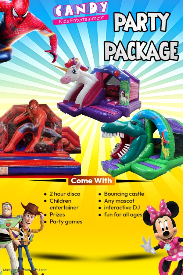 We deliver popular children party packages across County Durham and nearby towns: Stanley, Consett, Chester le Street, Gateshead, Sunderland and County Durham. Book the children entertainment 2 hour disco with any bouncy castle and mascot in stanley, consett, chester le street, gateshead, sunderland , county durham today and secure a busy, joyful party slot. 📅🎈
